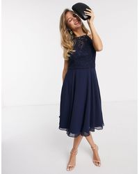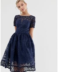 Chi Chi London Spitze Hochgeschlossenes Marineblaues Midikleid Aus Spitze Mit Tull Rock In Blau Lyst