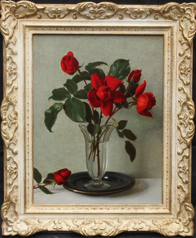 John Bulloch Souter - Red Roses in a Glass Vase - Scottish 1950's art floral still life oil painting For Sale at 1stDibs