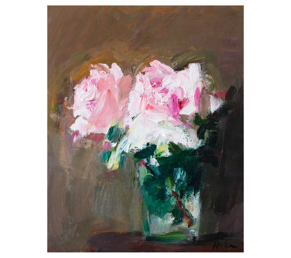 Ruffled Pink Roses in a Glass Vase Original Floral Oil | Etsy